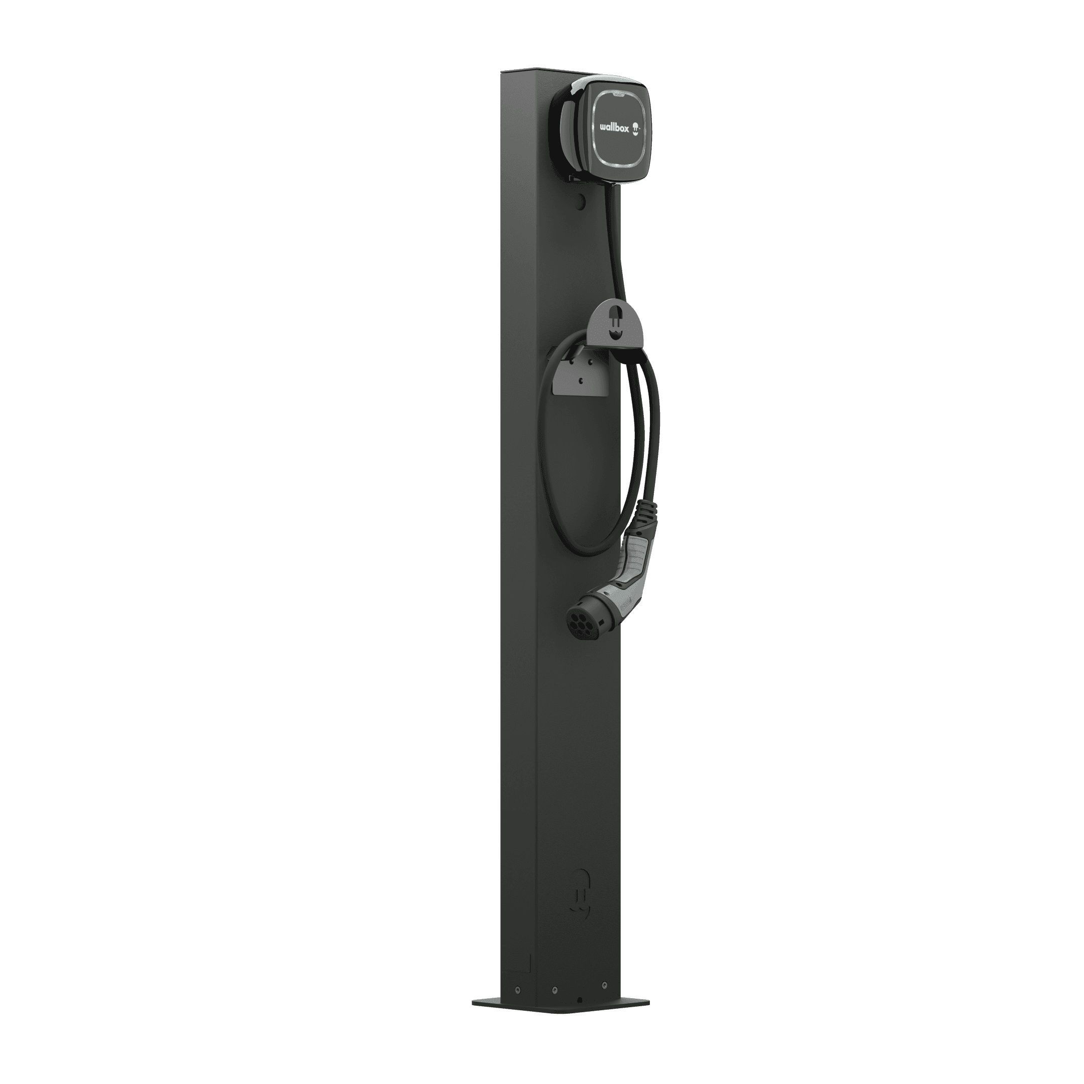 Finish: Matte black with laser-etched Wallbox logo